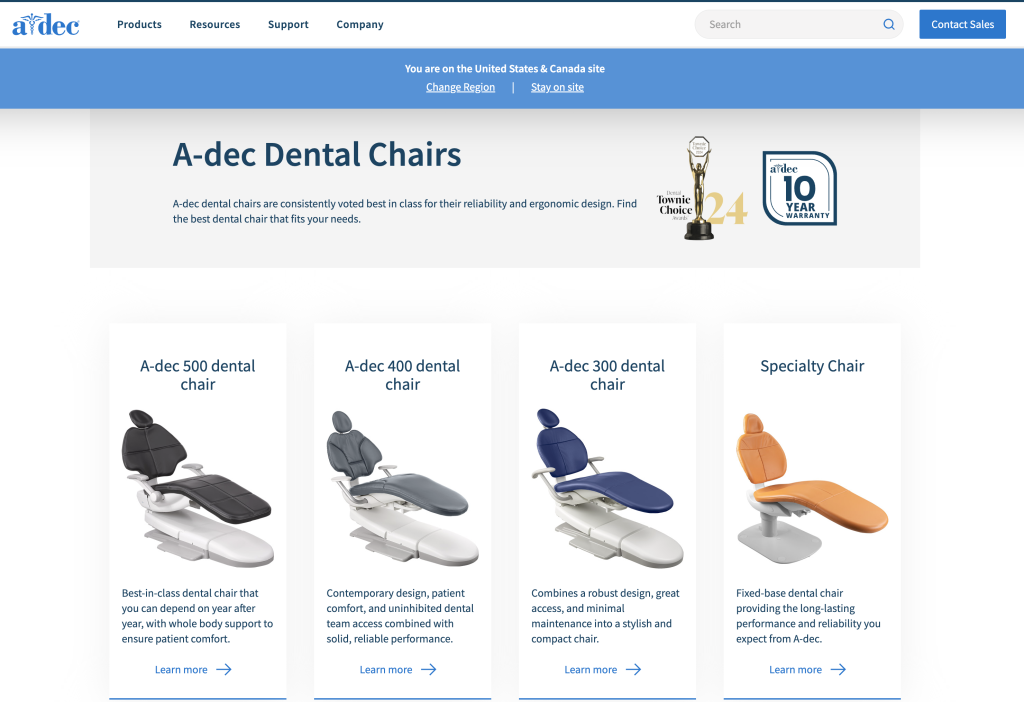 - A-dec 400 Series: Balances performance and value with hybrid drive systems (hydraulic base/electric tilt) and dual-articulating headrests.